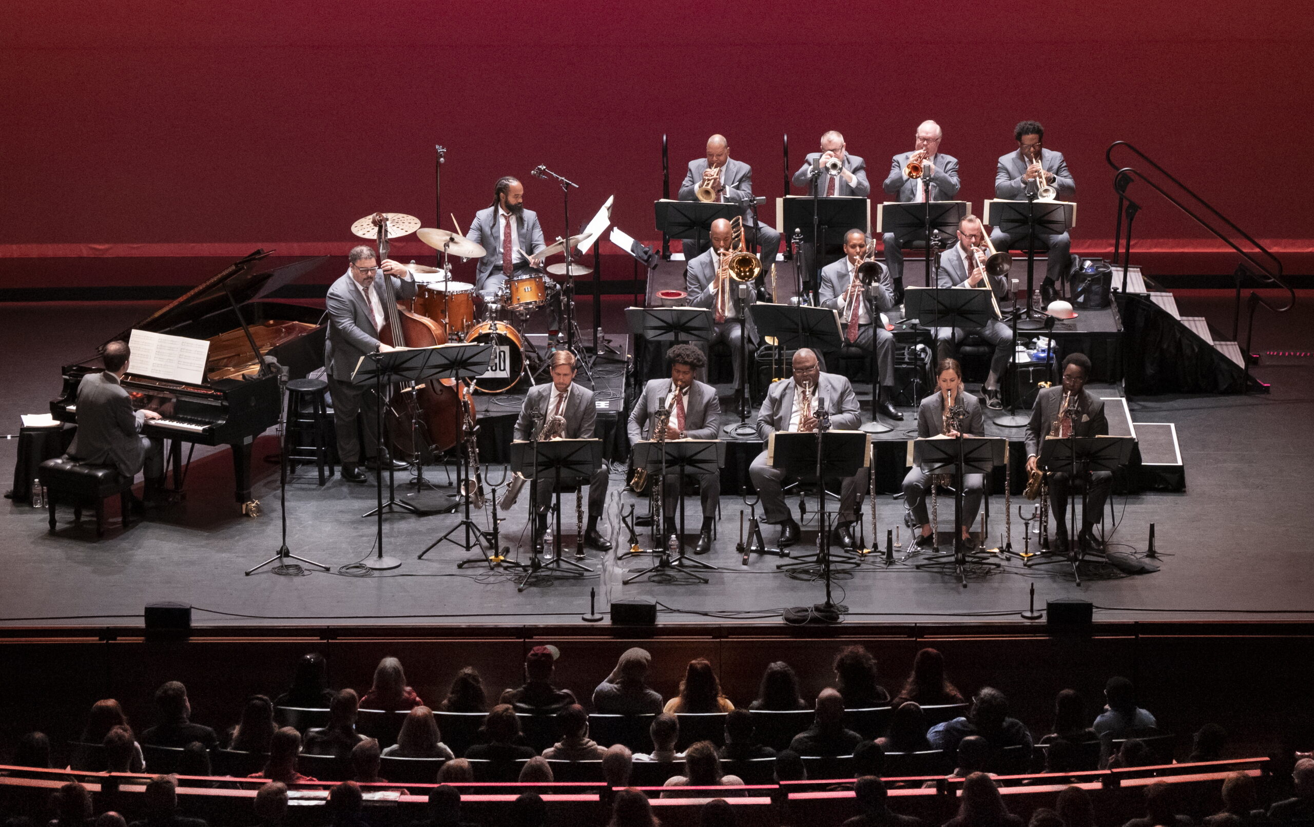 The Jazz at Lincoln Center Orchestra (JLCO), comprising 15 of the finest jazz soloists and ensemble players today, has been the Jazz at Lincoln Center resident orchestra since 1988 and spends over a third of the year on tour across the world. Featured in all aspects of Jazz atLincoln Center’s programming, this remarkably versatile orchestra performs and lead seducational events in New York, across the U.S., and around the globe; in concert halls; dance venues; jazz clubs; public parks; and with symphony orchestras, ballet troupes, local students, and an ever-expanding roster of guest artists. Under Music Director Wynton Marsalis, the Jazz at Lincoln Center Orchestra performs a vast repertoire, from rare historic compositions to Jazz at Lincoln Center-commissioned works, including compositions and arrangements by Duke Ellington, Count Basie, Fletcher Henderson, Thelonious Monk, Mary Lou Williams, Dizzy Gillespie, Benny Goodman, Charles Mingus, and current and former Jazz at Lincoln Center Orchestra members Wynton Marsalis, Wycliffe Gordon, Ted Nash, Victor Goines, Sherman Irby, Chris Crenshaw, and Carlos Henriquez.