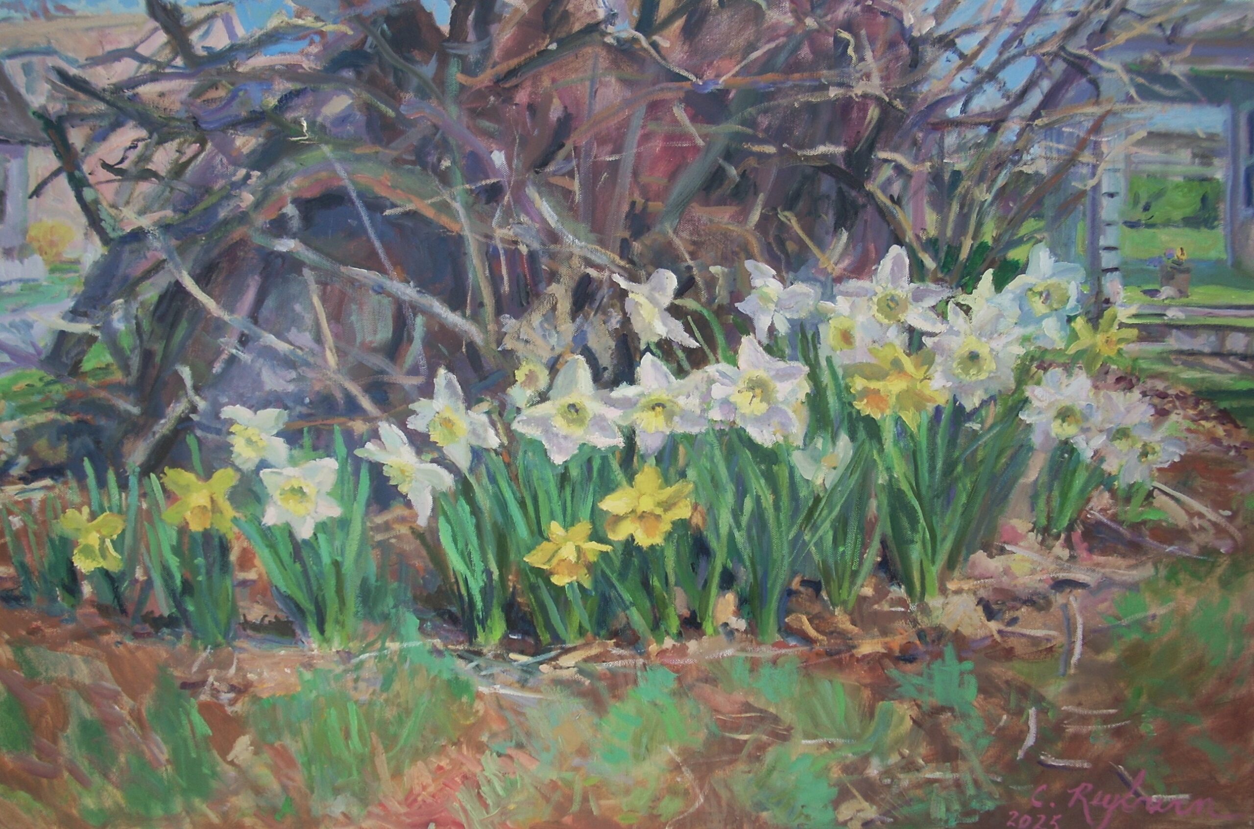 His first show was in 1977 at the Lyman Allyn Museum when the museum purchased two of his pieces. Since then, Charles has continued to paint en plein air on his French easel and can often be seen around town and at Harkness Park working on his art.