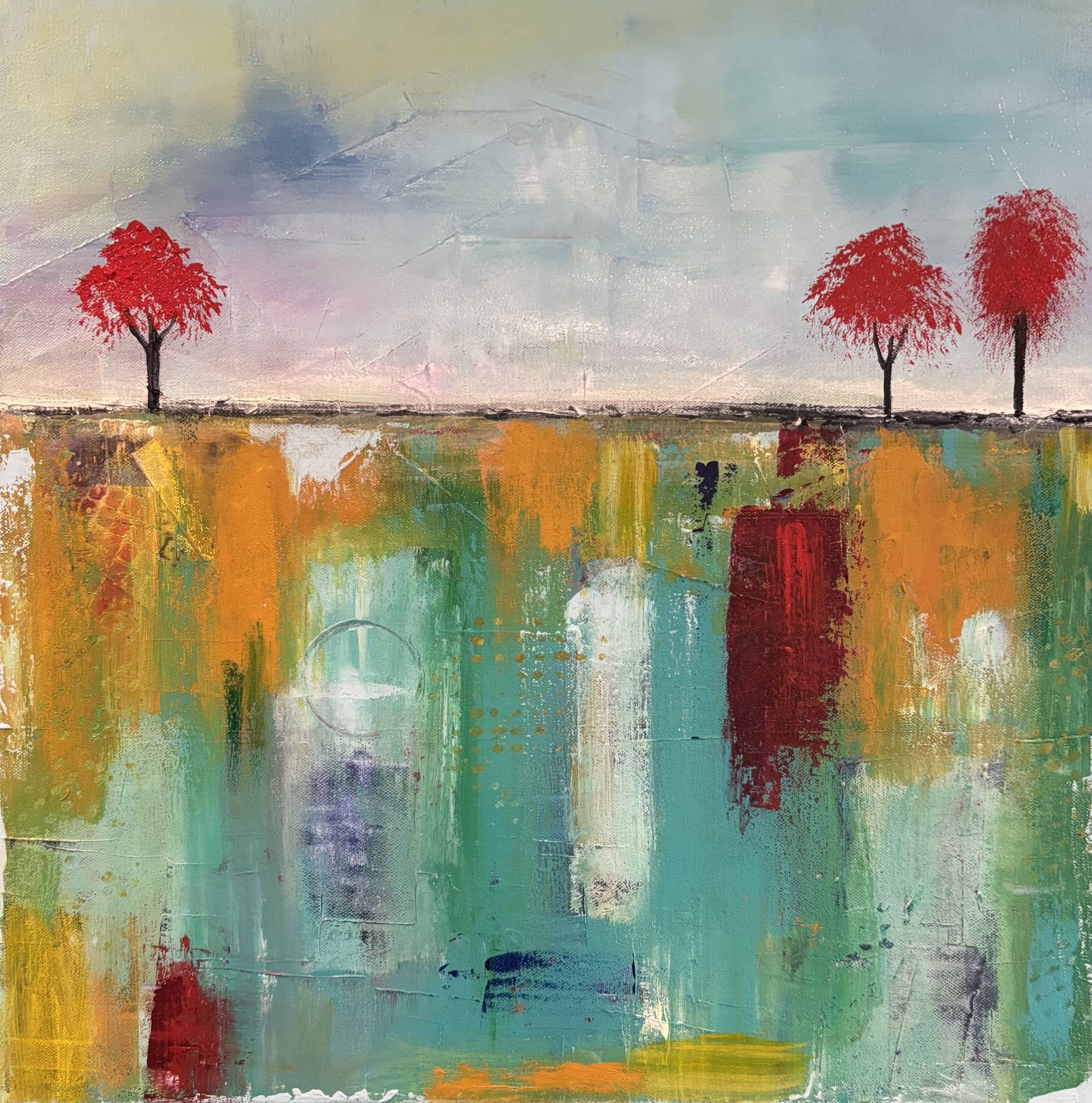 I am an acrylic and mixed-media artist based in Noank, Connecticut. After a career in science, I turned to painting as a way to process and express life’s complexities, especially during the pandemic and following my recovery from esophageal cancer in 2022. My work explores the tension between chaos and calm, fragility and resilience. Through bold colors, layered textures, and dynamic brushwork, I channel both turbulent emotions and moments of peace—ranging from abstract explorations of struggle to serene landscapes inspired by nature. My reflects resilience and transformation, inviting viewers to consider the infinite decisions, challenges, and fleeting moments of harmony that shape the human experience. consultant, artist, horse rescuer, dreamer.