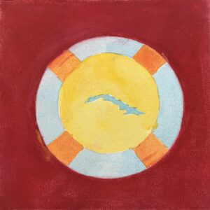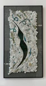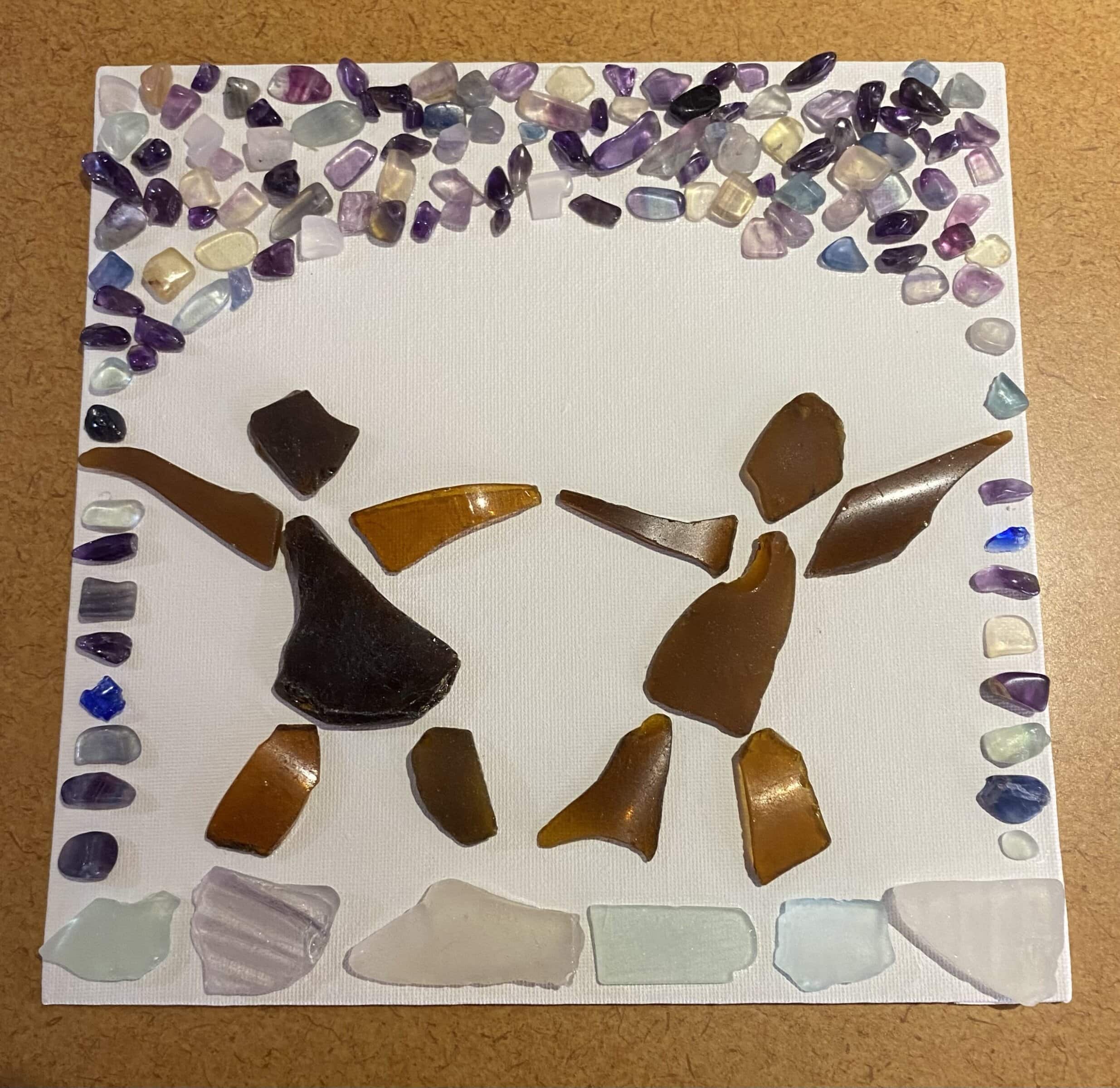 Zoë Banks is an artist based in Waterford, CT. She holds a B.A. in Dance and Psychology from Salve Regina University, where her commitment to exploring the intersections of movement and the mind flourished. Although her artistic background mainly resides in dance, she enjoys conveying silhouettes in motion on canvas. The recycled sea glass in this piece has been sourced on various coasts of Rhode Island.