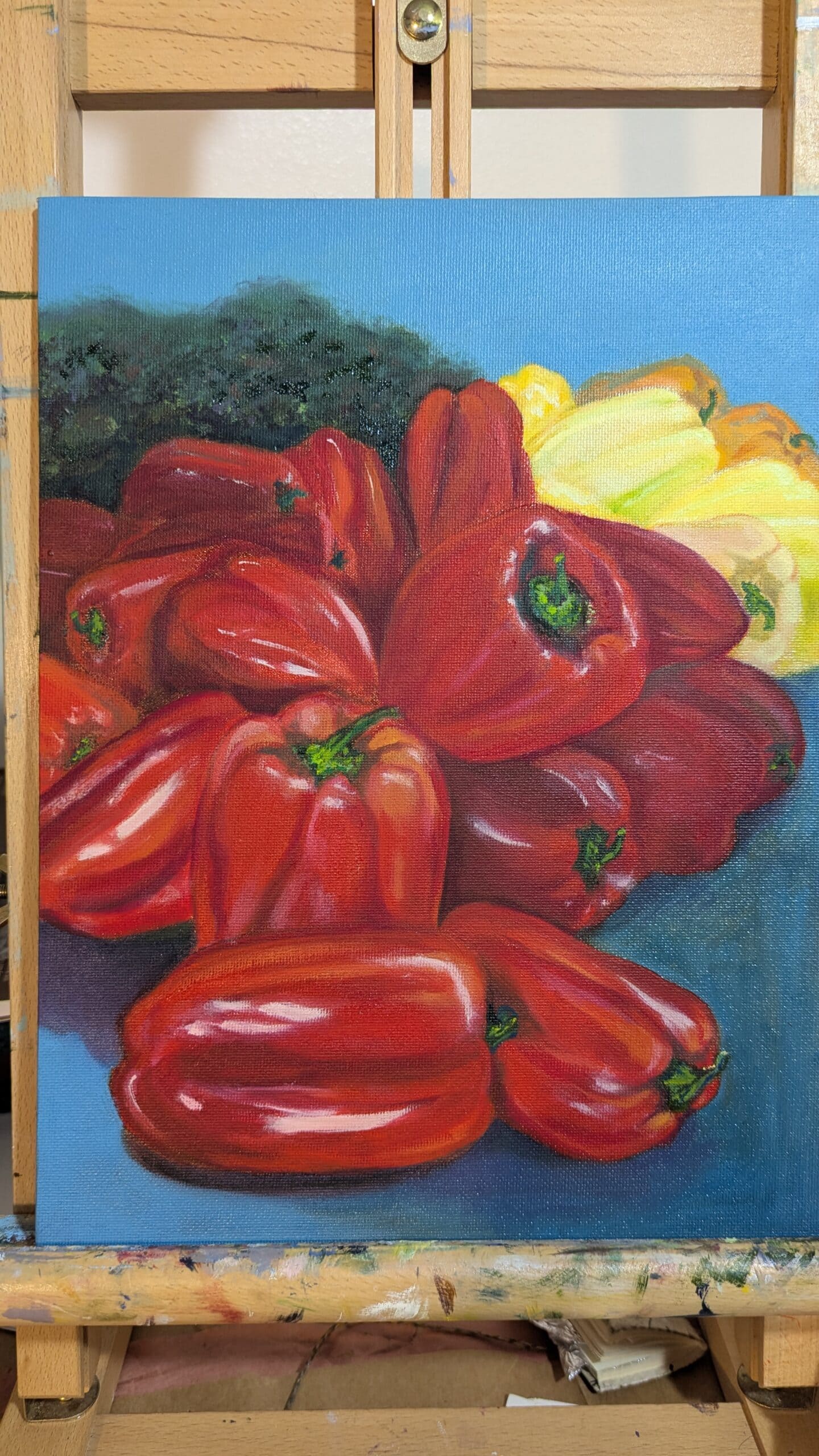 In life and in art I am a messy perfectionist. My process is not refined, but my finished pieces are clean and representational. I find joy in oil painting, from the fluidity of the paint to the ways the colors blend and how the brush strokes create dimension. I dream of color combinations and wake to capture them on canvas in rich and interesting layers. Painting allows me to calm my busy mind by focusing on creating a feeling or emotion. I enjoy painting fruits and vegetables in interesting ways. The colors and textures make me happy. I also have a passion for painting buildings and their surroundings, and I try to depict a feeling of what’s important to me about their architecture. I live in New London CT with my husband, daughter, two cats and a snake. Instagram kdiazsaavedra artist