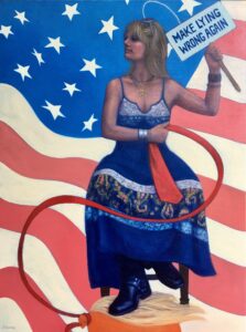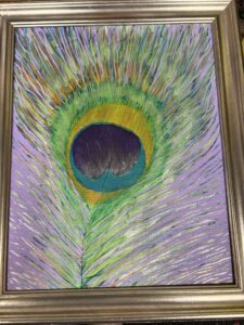 I currently reside in the quaint village of Pawcatuck and have maintained an art studio at the Velvet Mill in Stonington for over 14 years! I work in media of all types and continue to learn and grow in my Black Star Studio 6! The piece I chose for the women’s voices show is an acrylic painting titled ‘featherlight’ in remembrance of my mother Barbara who passed Oct 2025 and I found out afterwards that peacock feathers are one of the symbols of the name Barbara! My mother‘s voice was quiet, but her life was powerful… her actions were of love and kindness which speaks more volumes than words! 860-885-9169 or veronicasblackstar@gmail.com